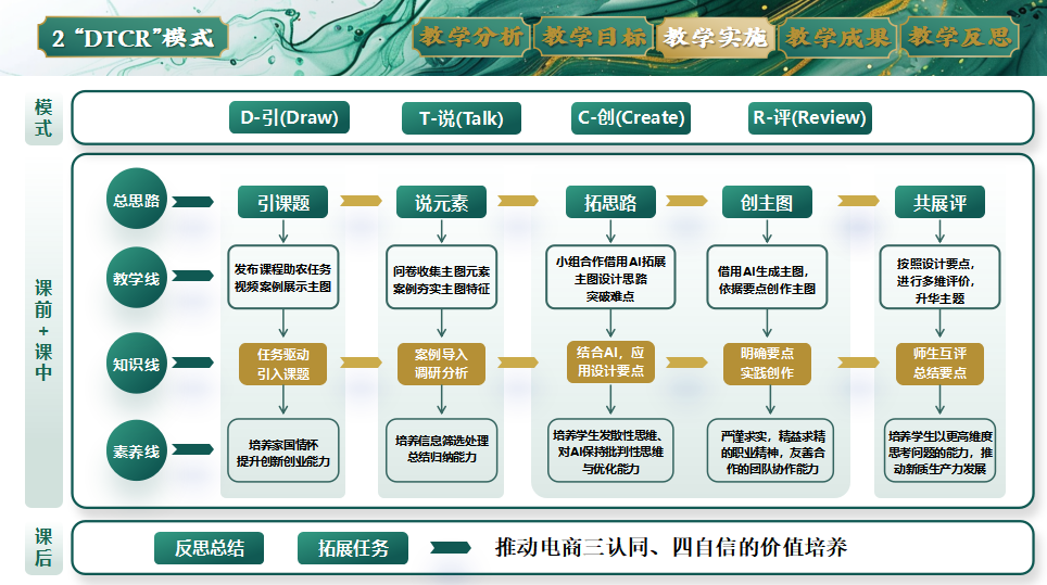 本次公开课以 “AI 赋能主图设计,助力农货电商上行” 为核心,紧扣乡村振兴战略与电商产业发展需求,将技术实操、营销思维与思政教育有机融合。课堂上,叶露露老师以创业学生代表电商项目为真实任务切入点,通过 “引课题 — 说元素 — 创主图 — 互展评” 的 “DTCR” 教学模式,循序渐进引导学生掌握主图设计技巧。从借助 AI 工具拓展设计思路,到运用图形图像处理软件优化图像细节,再到融入 “金农好好” 地域品牌元素凸显文化内涵,全程贯穿 “定方圆、巧用心、树品牌、抓重点” 四大设计原则,让学生在实践中理解 AI 技术的高效应用,感受视觉营销的商业价值。