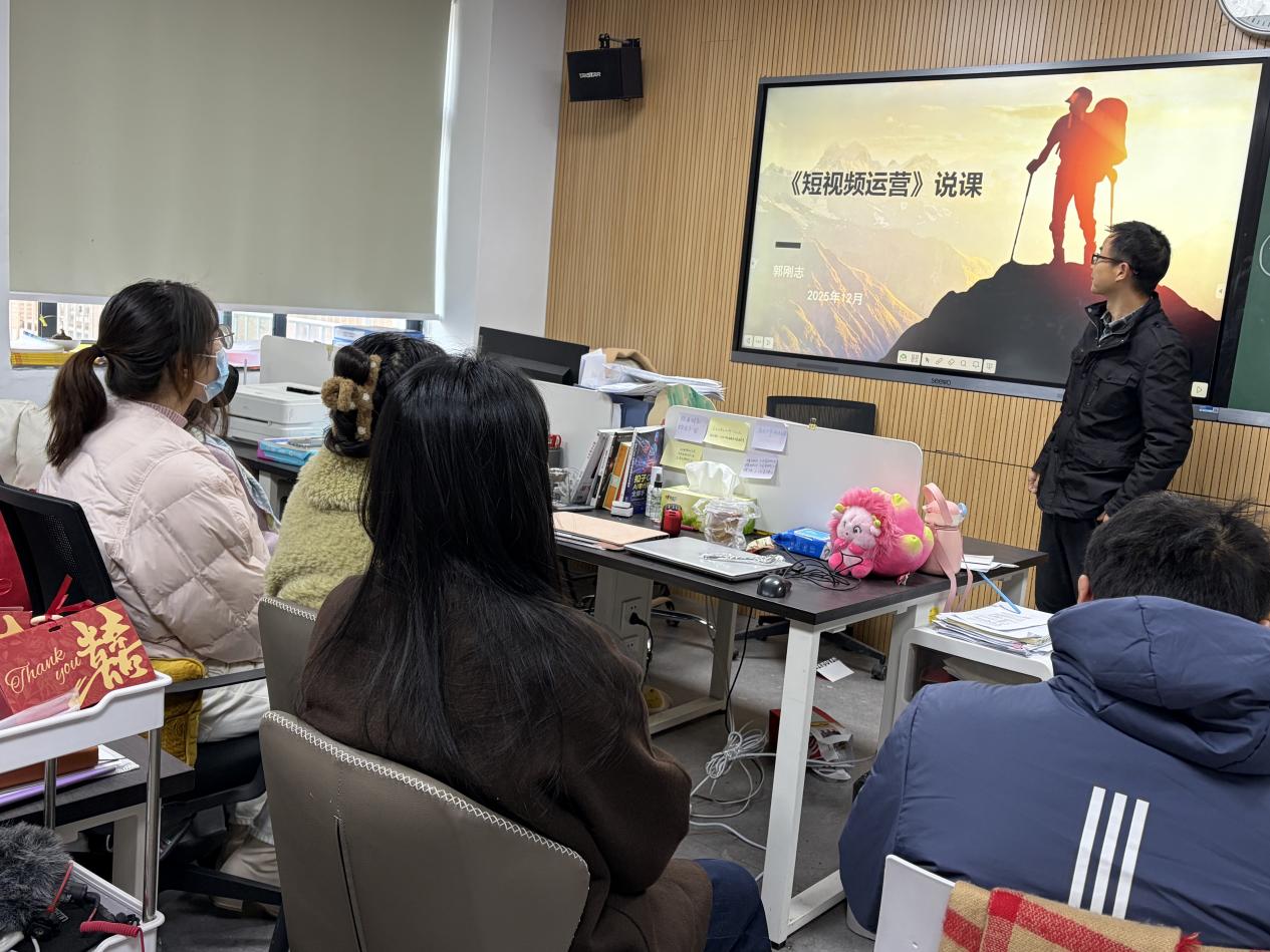 12月4日,创业学院网络营销与直播电商专业聚焦课程质量提升与人才培养精准对接,成功开展“四说”系列活动之说课程专场。本次活动以深化内部质量保证体系建设为核心,邀请郭刚志、余苗、王宸圆三位老师分别围绕《短视频运营》《新媒体运营》《直播销售》三门核心课程分享建设思路,通过专业内教学交流与思想碰撞,助力课程诊改与教学质量升级。