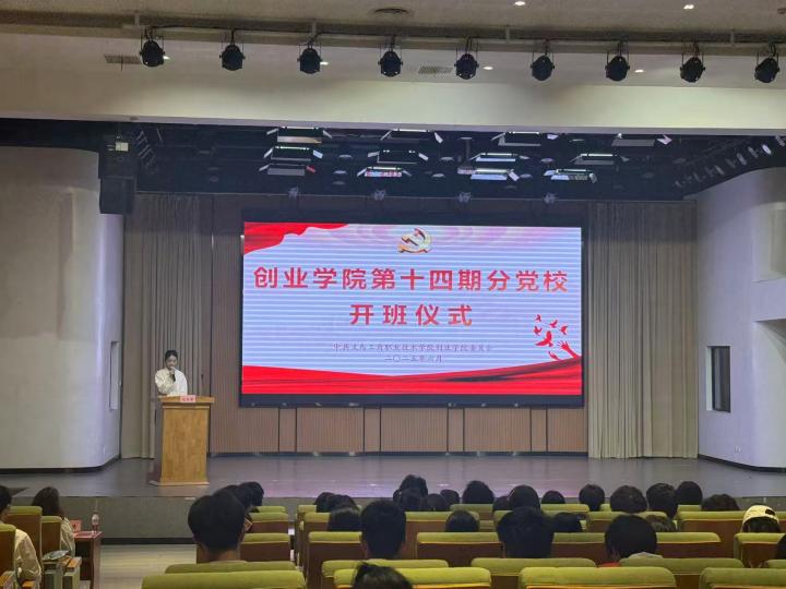 为深入学习贯彻习近平新时代中国特色社会主义思想,持续提升学生党员党性修养,6月3日下午,创业学院举行了第十四期分党校开班仪式。创业学院党委副书记、各党支部书记、辅导员,马克思主义学院教师,预备党员、入党积极分子等百余人共同参加了本次活动。