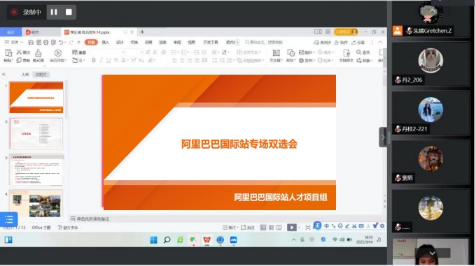 9月16日晚上,为落实教育部供需对接项目,拓宽毕业生就业渠道,创业学院联合阿里巴巴国际站举办线上双选会,15家入驻阿里国际站企业、200余名25届毕业生参加。