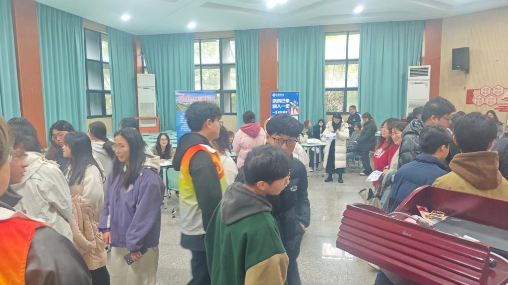 招聘会现场气氛热烈,人头攒动。各参会企业纷纷亮出“招贤榜”,以优厚的薪资待遇、完善的职业发展路径和良好的企业文化吸引优秀人才。校友企业浙江宝辰供应链服务有限公司展位前更是排起了长队,毕业生们手持精心准备的简历,积极与企业招聘人员交流,主动了解岗位信息,展现自身优势。