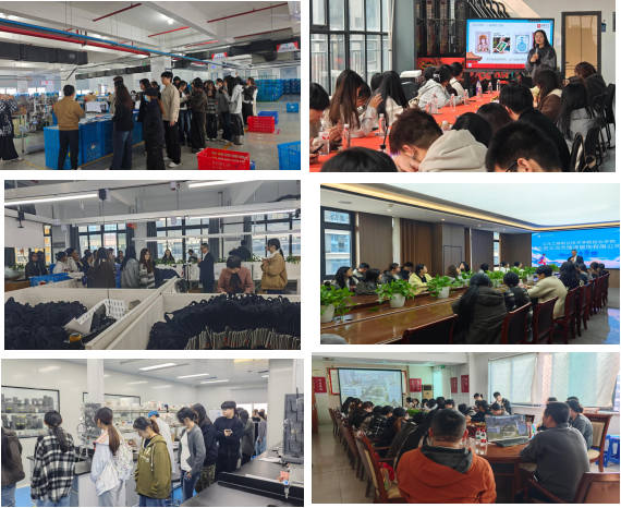 随后,分别走访了蒂彩、瑞泽、艳庄及易镭跨境电商园区,参观了生产车间、设计研发中心、产品展示区等,结合座谈交流,同学们了解了企业发展历程、行业发展趋势,学习了不同电商模式的运营策略和商业模式创新实践。