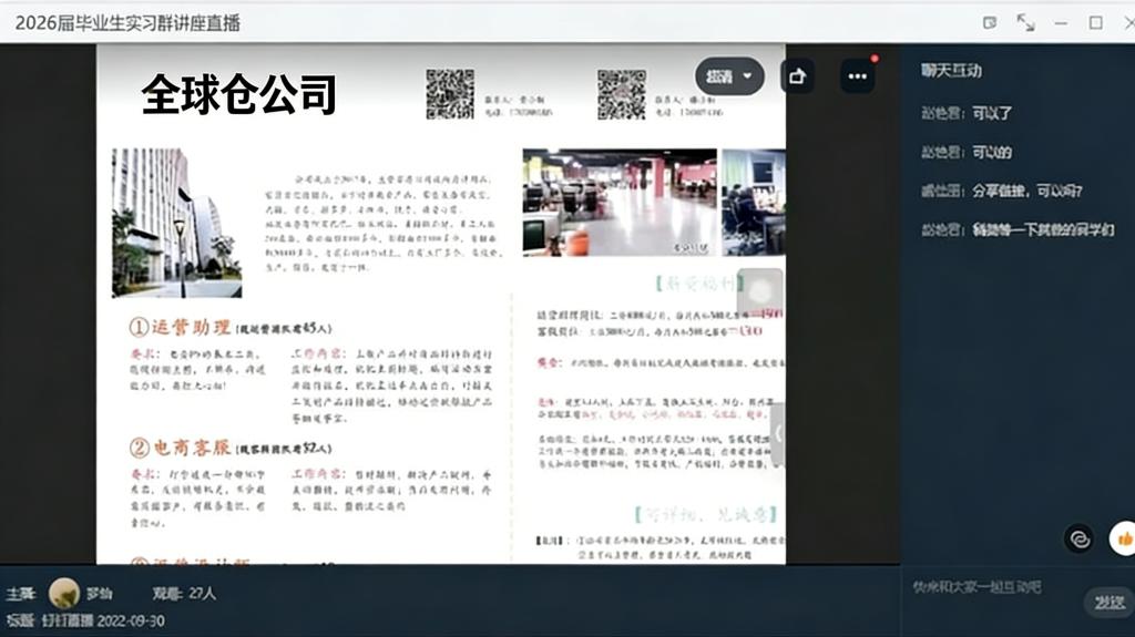 活动过程中,学生们通过线上聊天区与企业实时沟通,咨询岗位细节、实习待遇等问题,企业方逐一解答,互动氛围热烈。