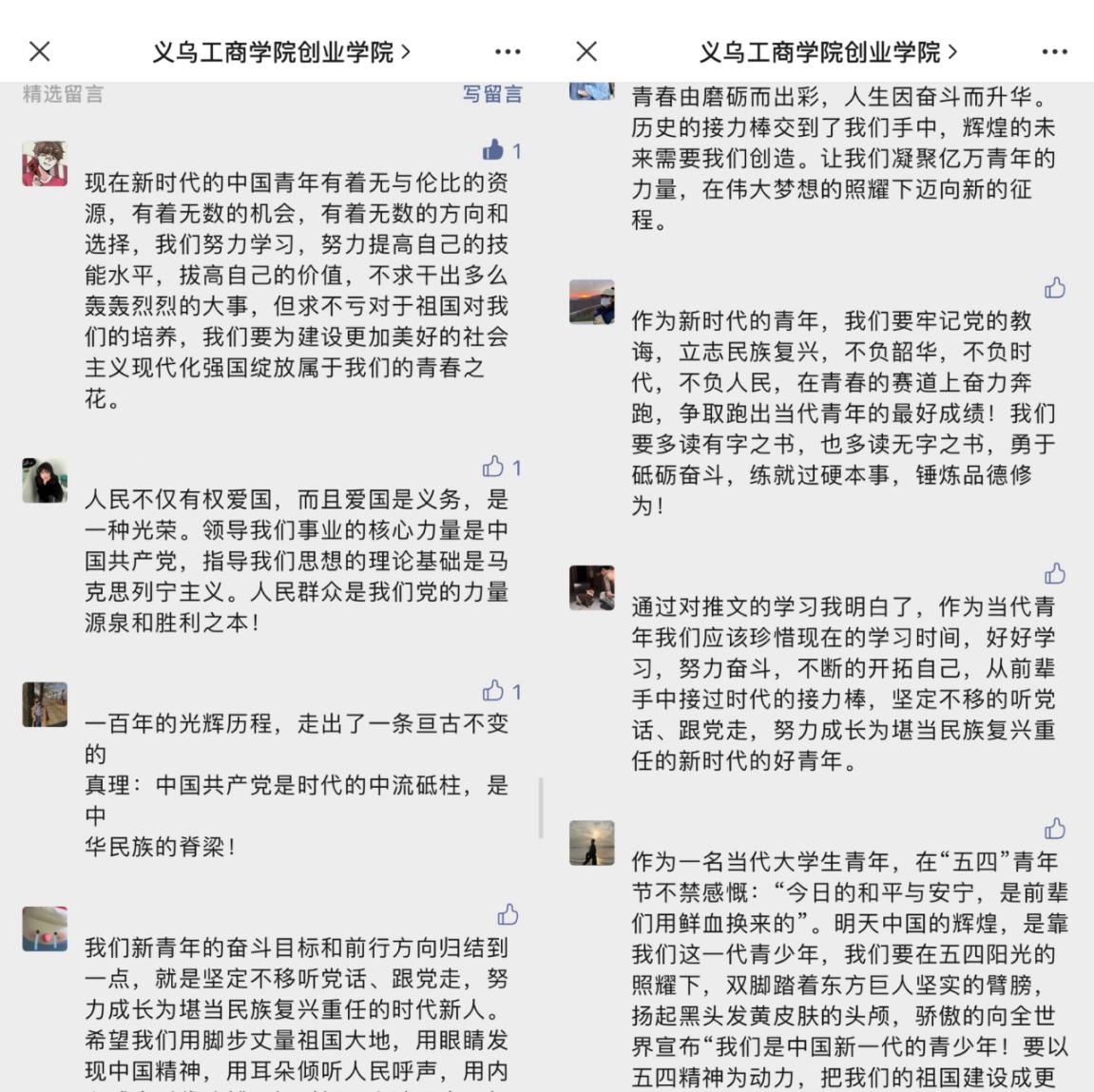 依托创业学院官方微信公众号,开展学“习”青年说,运用网络载体高效、便捷、实时的优势,将此次学习嵌入“掌中”,进一步扩大学习覆盖面,让更多的创业学子学习习近平总书记考察中国人民大学的重要讲话精神,提升学习内驱动力。该学习活动在学校麦穗计划平台一经发布,就有三百余名学生报名参与,并自主认真地学习推文内容,在留言处写下发自肺腑的心得感悟。
