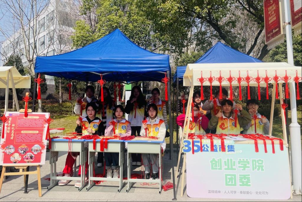 3月5日,创业学院团委在校公益市集中组织红创志愿者亲手编织中国结,全校同学可以通过出示自己的志愿服务时长,领取饱含美好寓意的中国结。据悉,从去年暑假开始,创业学院红创志愿者便在磐安、东阳、兰溪等地持续开展送编织中国结的直播公益培训下乡活动,发挥电商专业优势,让农村妇女、老人在家门口就能实现直播创业,助力浙江省山区26县高质量发展。