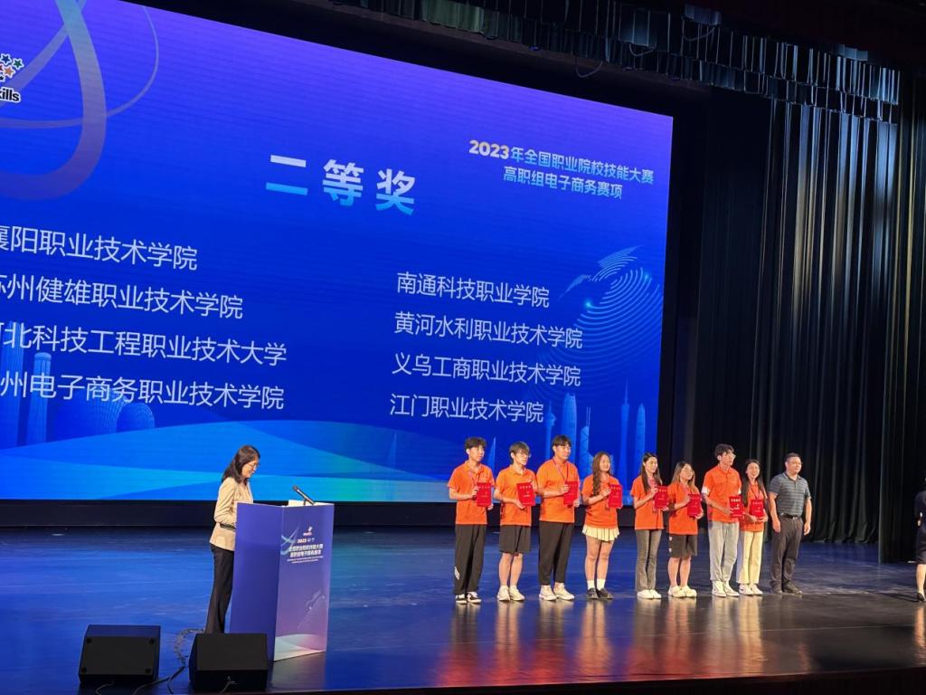 7月26日,由广东科学技术职业学院承办的2023年全国职业院校技能大赛高职组电子商务赛项技能竞赛于珠海顺利落下帷幕。该赛项共有来自全国各省共74支队伍参赛。经过两日的激烈角逐,由朱景伟、颜颖老师指导,楼萧怡、郑奕扬、唐天龙、朱俊韬4名同学组成的代表队喜获全国二等奖,实现了电子商务技能竞赛首次进入国赛并获得国赛二等奖的突破。