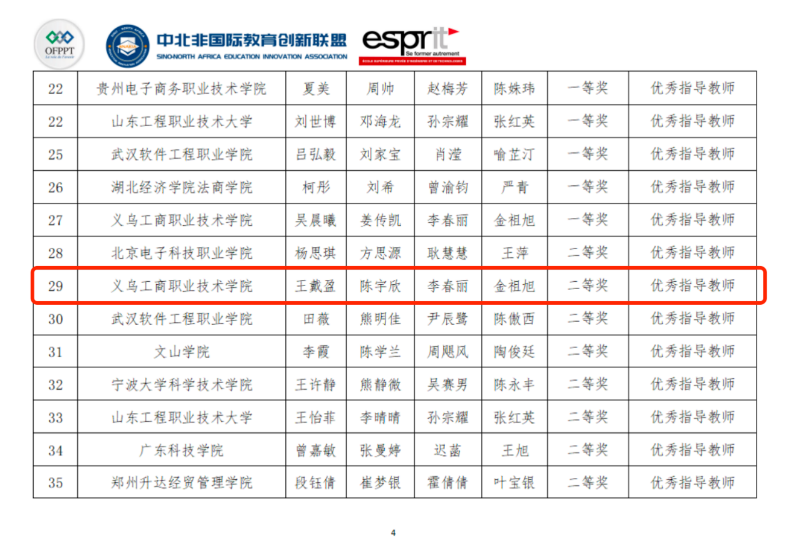 部分获奖名单