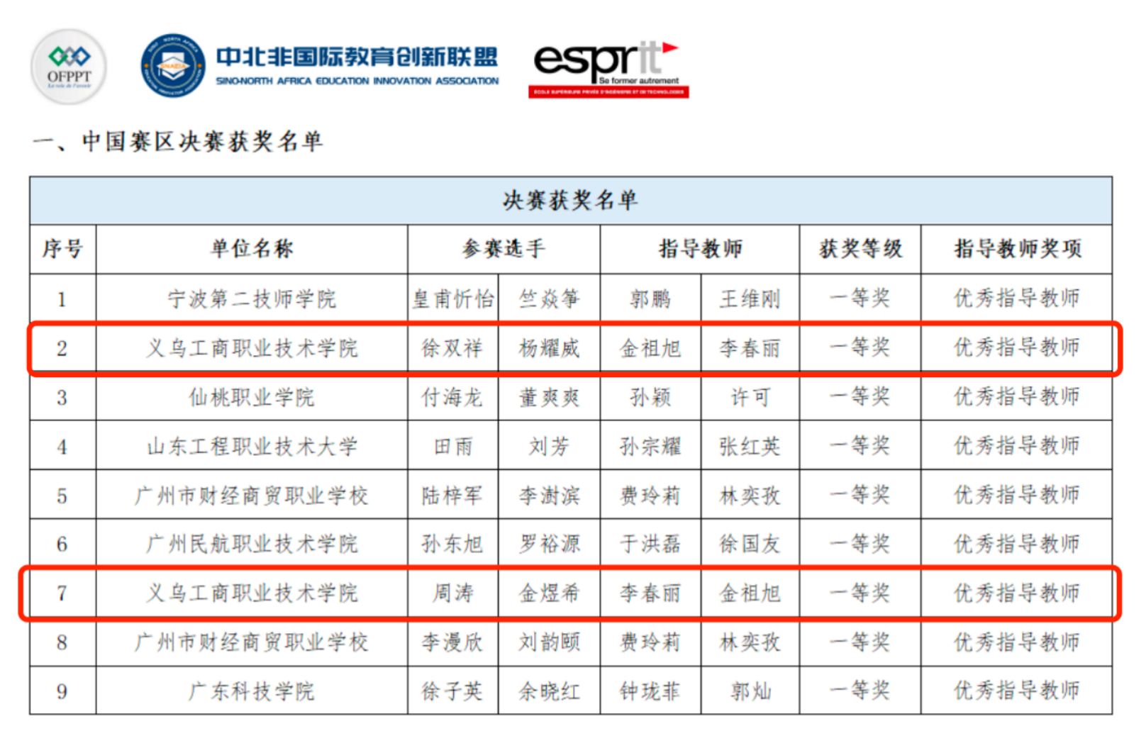 2023年11月1日-2日,2023首届中北非国际职业教育数字化创新技能竞赛跨境电子商务赛项中国赛区决赛在义乌工商职业技术学院成功举办。该赛事共有来自全国63所院校的345支队伍在线参赛。经过激烈角逐,我校由李春丽、金祖旭老师指导的8支参赛团队成绩优异,分别获一等奖5项、二等奖1项、三等奖2项,晋级国际总决赛。