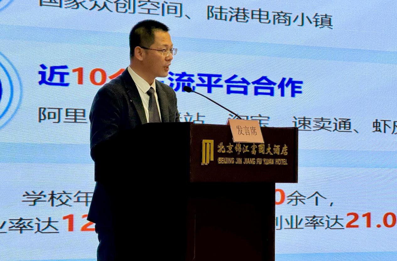 在大会上作交流发言的包括北京国联视讯信息技术股份有限公司等10家单位,我校创业学院负责人在会上做《搭平台育人才 强培训赋动能》主题发言,分别介绍了我校提升“直播”+“短视频”两技能,提高“活血”强度;培育“专业”+“创业”两人才,提升“造血”速度;打造“理论”+“实践”两平台,强化“输血”力度三方面的实践经验。我校的发言得到了与会各方的充分肯定,认为我校的人才培养、社会服务工作有特点、可借鉴、可推广。