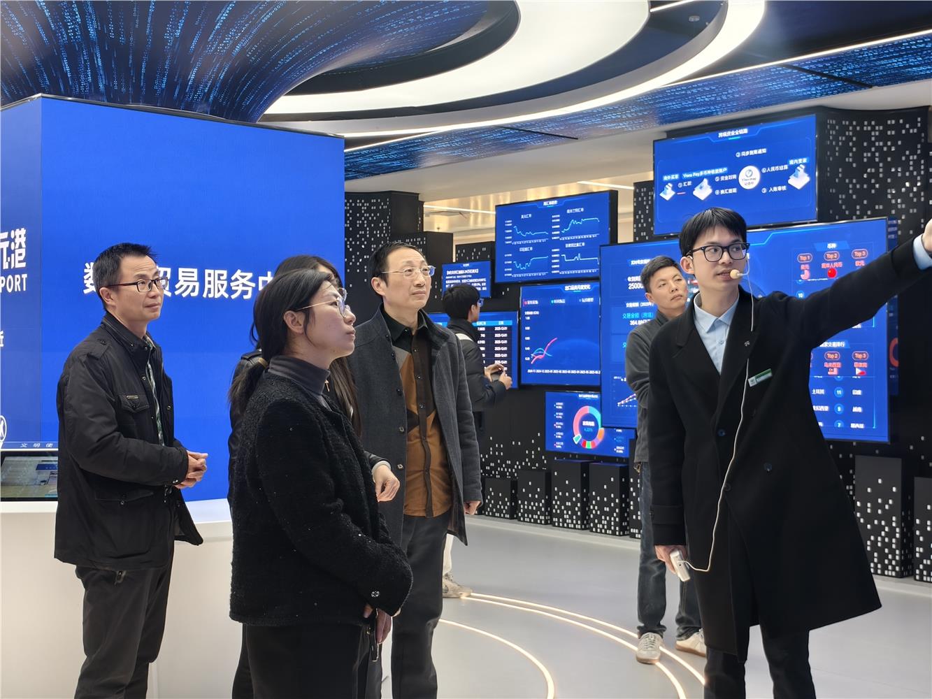 在数贸中心工作人员的引导下,调研团队先后参观了数贸展示中心、数据交易中心、新品发布中心等核心功能区,全方位了解“1+3+N”发展体系的运行逻辑。从Chinagoods平台的“关汇税、运仓融”一站式服务,到世界义乌商贸大模型的13项AI应用,再到“一键开店、店开全球”的数字化场景,老师们直观感受了数字技术对贸易全链路的赋能效果。