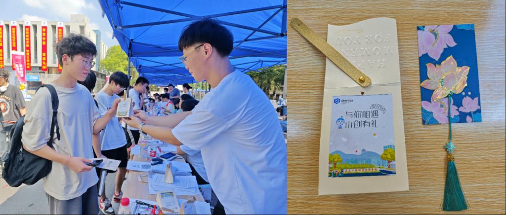 为了增添迎新的趣味性和互动性,学院还为新生们准备了一份别出心裁的盲盒迎新礼。这些盲盒外观精美,内藏玄机,新生们怀着激动的心情一一打开,惊喜地发现里面装有各式各样的精美小礼品。其中,冰箱贴和钥匙扣等实用小物让新生们感受到了学院的贴心与关怀,而充满廉洁寓意的莲花书签更是成为了大家热议的焦点。莲花作为中国传统文化中的廉洁象征,其纯洁高雅的形象与诚信廉洁的精神相得益彰。学院选择将莲花书签作为迎新礼物之一,正是希望新生们能够以“莲”为信标,时刻保持清醒的头脑和坚定的廉洁信念。